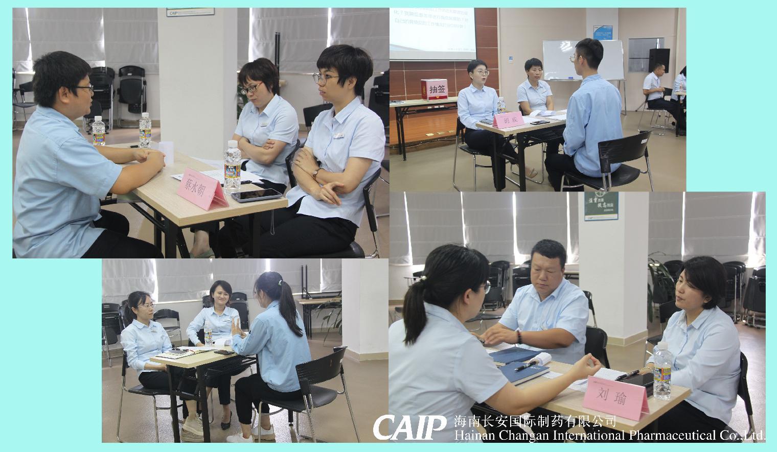 現(xiàn)場(chǎng)評(píng)估答辯分為三個(gè)環(huán)節(jié):自我介紹、現(xiàn)場(chǎng)必答題、抽簽答題。面試主考官由長安制藥中高層領(lǐng)導(dǎo)組成,每位新晉管理人員的面試主考官和第三個(gè)環(huán)節(jié)的答題都是由抽簽來決定,體現(xiàn)了公平公正公開的原則。