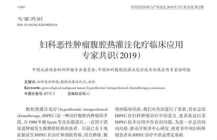 洛鉑再獲“婦科惡性腫瘤腹腔熱灌注化療臨床應用專家共識”推薦!