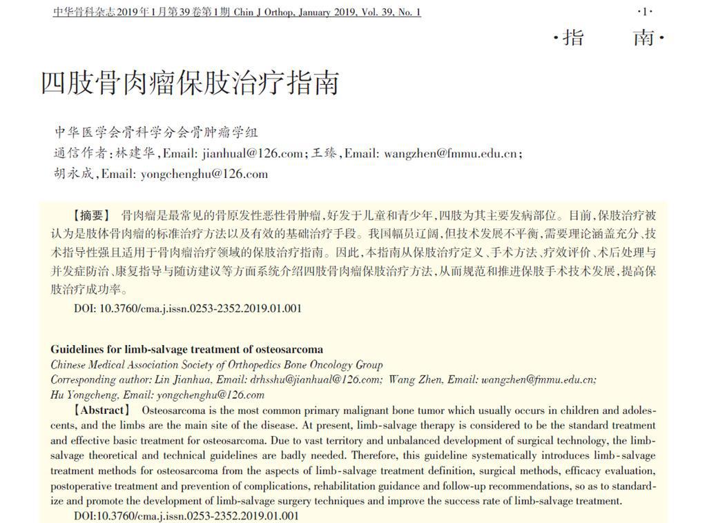 骨肉瘤是最常見的骨原發(fā)性惡性骨腫瘤,好發(fā)于兒童和青少年,四肢為其主要發(fā)病部位。目前,保肢治療被認為是肢體骨肉瘤的標準治療方法以及有效的基礎(chǔ)治療手段。我國幅員遼闊,但醫(yī)療技術(shù)發(fā)展不平衡,需要理論涵蓋充分、技術(shù)指導性強且適用于骨肉瘤治療領(lǐng)域的保肢治療指南。因此,“四肢骨肉瘤保肢治療指南”從保肢治療定義、手術(shù)方法、療效評估、術(shù)后處理與并發(fā)癥防治、康復指導與隨訪建議等方面系統(tǒng)介紹四肢骨肉瘤保肢治療方法,為規(guī)范和推進保肢手術(shù)技術(shù)發(fā)展、提高保肢治療成功率保駕護航。